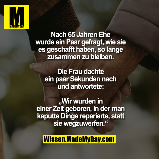 In unserer schnellebigen Zeit allerdings werfen wir Gegenstände und Menschen viel zu schnell weg. Früher hielten Beziehungen ewig, weil sie „immer wieder repariert wurden“, wenn es Probleme gab.